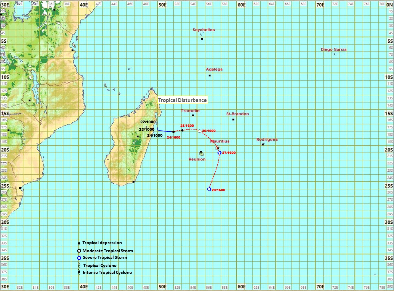 Un avertissement de cyclone de Classe I est en vigueur à Maurice. Premier bulletin de cyclone pour Maurice émis à 16h10 heures ce lundi 24