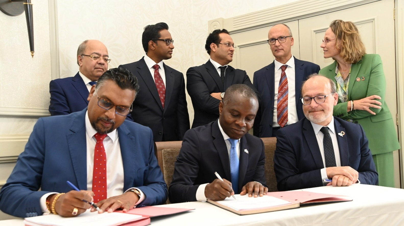 Le ministre de l’Environnement, de la Gestion des déchets solides et du Changement climatique, Rajesh Bhagwan, aux côtés du ministre de l’Agro-industrie, de la Sécurité