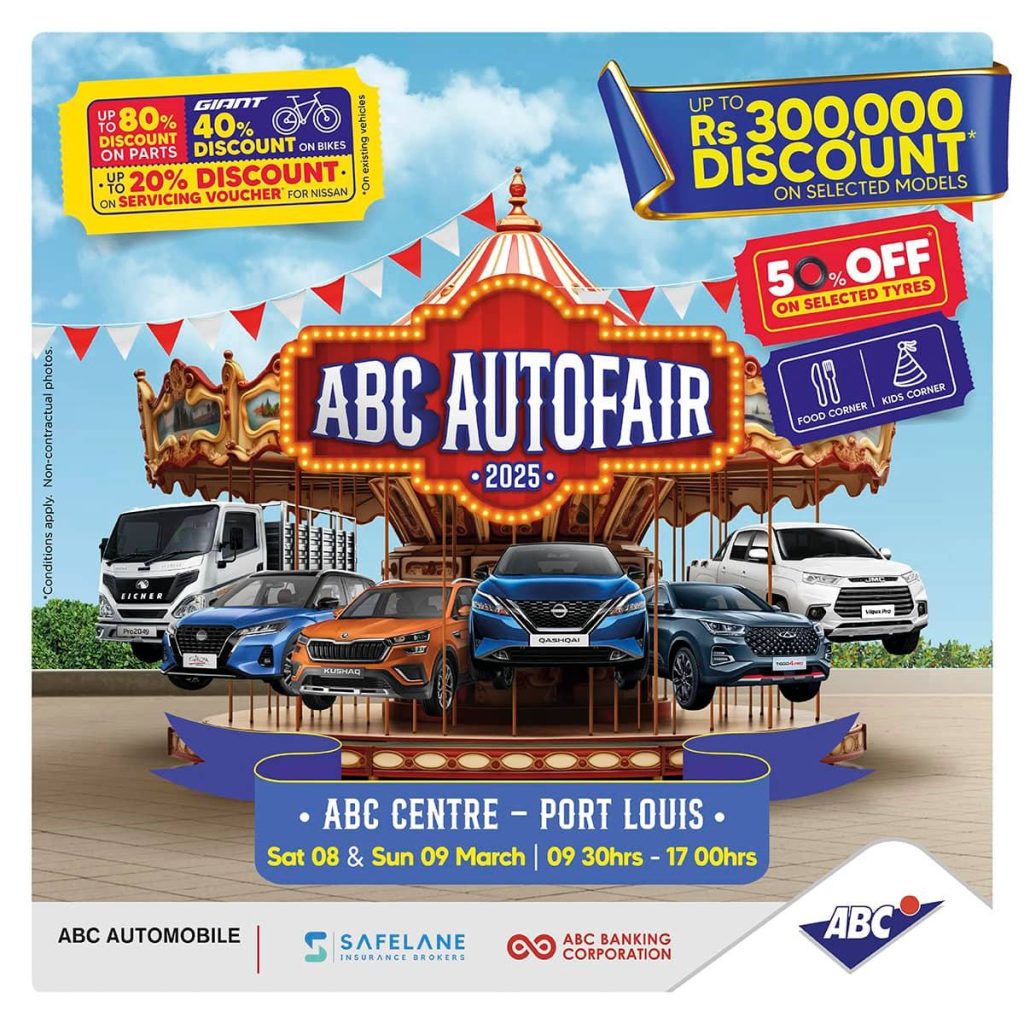 ABC Automobile, pôle automobile du Groupe ABC, organisera la troisième édition de l’ABC Autofair le weekend du 8 et 9 mars prochain. Cet événement, ouvert au grand public, se tiendra à la Route Militaire, Port-Louis.