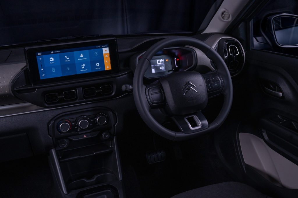 À bord, le confort est à l’honneur grâce au programme Citroën Advanced Comfort™, qui transforme l’habitacle en un véritable « Happy Space ». Les passagers bénéficient d’un espace généreux, de nombreux rangements astucieux, et d’un coffre de 315 litres. La technologie embarquée inclut un écran tactile de 26 cm avec Apple CarPlay™ et Android Auto™ sans fil, ainsi que des équipements de sécurité tels que les airbags, ABS/EBD, capteurs de recul et caméra arrière.