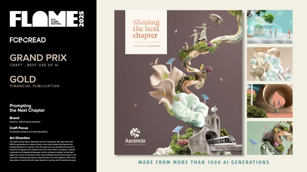 Le Grand Prix Design-Craft Best Use of AI a été attribué à l’agence FCBCREAD pour le rapport annuel Prompting the Next Chapter, réalisé pour Ascencia. Un choix audacieux qui prouve qu’un document financier peut devenir une œuvre d’art narrative. Yanis Sookloll, CEO & Chief Creative Officer de FCBCREAD, témoigne de son émotion : « Il faut toujours croire en soi. Nous avons bien réfléchi avant de présenter nos campagnes aux Flame Awards – un choix stratégique. Alors, voir notre rapport annuel Prompting the Next Chapter, conçu pour Ascencia, remporter le Grand Prix Design-Craft Best Use of AI est une émotion indescriptible. On ne s’attendait pas à ce qu’un rapport financier puisse se démarquer parmi tant de campagnes et de créations extraordinaires. Et pourtant, le jury l’a reconnu. C’est une grande fierté de voir que ce travail a touché et inspiré. »