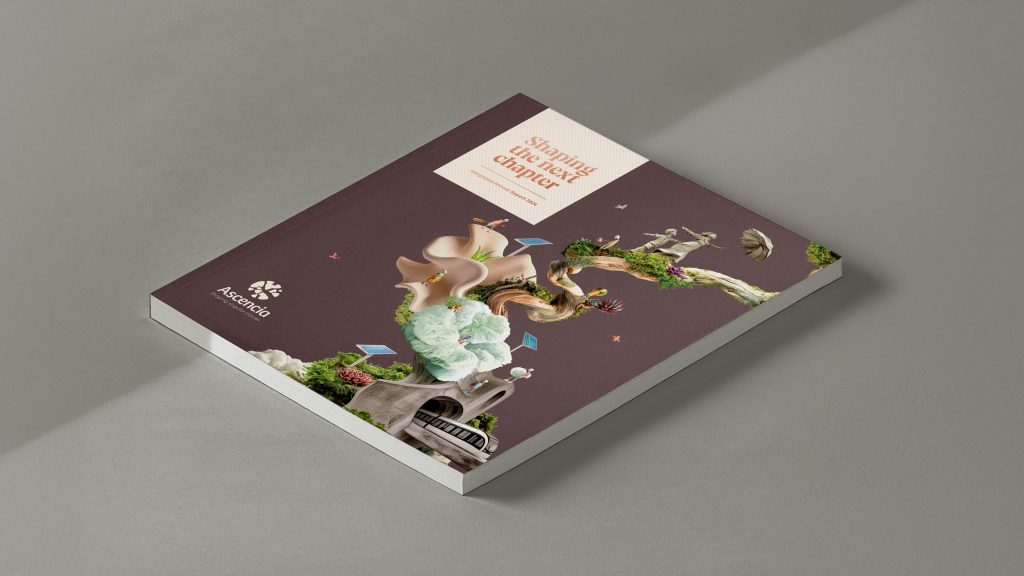 Il explique la genèse du projet : « Nous avons construit ce projet au cœur même de l’histoire d’Ascencia. L’entreprise met un point d’honneur à créer des espaces durables : favoriser la lumière naturelle, valoriser les plantes endémiques, limiter la climatisation. Nous avons voulu traduire cette philosophie à travers le concept de singularité – leur tagline, Shaping Singular Places. Chaque élément visuel du rapport illustre cette idée : à chaque fois qu’une pierre se forme, une plante naît. C’est la métaphore de leur façon de bâtir, d’imaginer un nouveau chapitre à chaque projet, et nous l’avons prolongée dans l’univers du design et de l’intelligence artificielle. »