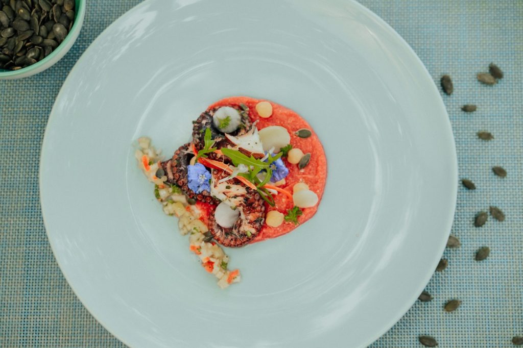 En effet, le menu s’annonce prometteur. En apéritif, bonbons de confit de canard ou au fromage de chèvre pour les végétariens, accompagnés d’une sauce tamarin. Poulpe braisé ou palmier braisé, accompagnés de houmous de betterave et salsa d’ananas de Chamarel attendent les fines bouches en entrée. Le plat principal, quant à lui, invite à un véritable voyage gustatif : gigot d’agneau farci à l’ail et pistaches servi avec un écrasé de pommes de terre à la truffe noire, maïs grillé, sauce balsamique et romarin. En parallèle, les végétariens pourront se régaler d’une généreuse portion de spaghetti de blé entier nappés d’un ragù de champignons portobello et truffe noire, pesto de tomate et ricotta.