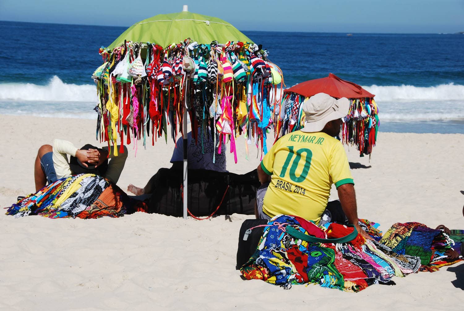 Des étals colorés, des vendeurs en pleine négociation commerciale, de la nourriture qui cuit à l’air libre. Les plages de Rio de Janeiro, au Brésil, sont autant célèbres pour leur sable blanc que pour l’animation qui y règne. Des hommes et des femmes venus du haut des collines de la capitale tentent d’attirer les touristes avec des produits en tout genre : maillots de bain, chaises, parasols, ballons, viande grillée ou encore caïpirinhas, le célèbre cocktail brésilien.
