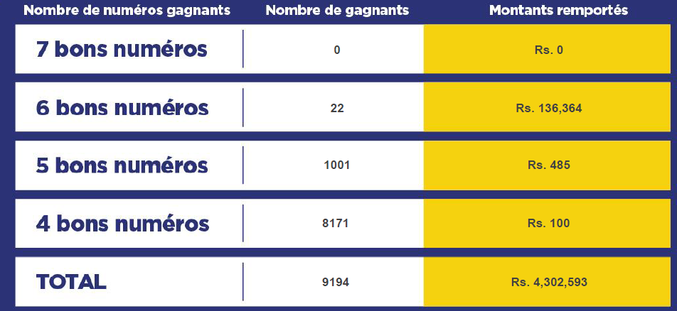 Pour le 185e tirage, 22 joueurs se partagent le jackpot de Rs 3 millions grâce à 6 bons numéros.