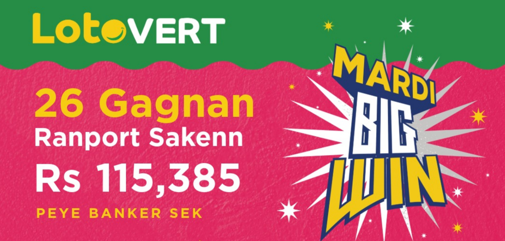 - 6 Bons numéros : 26 gagnants qui remportent la somme de Rs 115,385 chacun