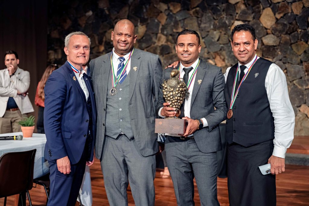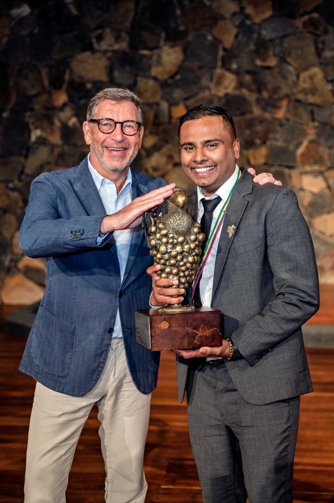 Qui dit talents exceptionnels dit forcément finale sensationnelle ! Devant un jury composé d’experts locaux et internationaux de renom (dont David Biraud, Meilleur Sommelier de France 2002, et Jérôme Banctel, chef triplement étoilé Michelin), les prétendants au titre de Meilleur Sommelier de l’île Maurice ont offert une prestation de haut niveau. C’est finalement Jaisen Pandoo, représentant du Constance Prince Maurice, qui a été sacré grand lauréat de cette édition. Grâce à cette victoire, il représentera fièrement l’île Maurice l’année prochaine au prestigieux concours du Meilleur Sommelier du Monde, qui se tiendra au Portugal.