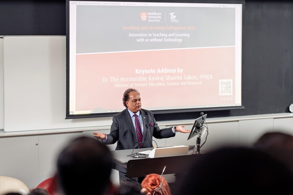 Placé sous le thème « Innovation in Teaching and Learning with or without Technology », ce colloque a réuni des acteurs clés de l’enseignement supérieur : responsables d’institutions, régulateurs, étudiants et universitaires. Il témoigne de l’engagement de l’institution à se positionner à l’avant-garde de cette transformation, en défendant des approches pédagogiques innovantes qui répondent aux standards internationaux tout en valorisant le lien humain, indispensable à la réussite étudiante. En ouverture, le Dr Phil Barter, directeur académique de Middlesex University Mauritius, a accueilli les participants et donné le ton d’un programme riche, axée sur la promotion de l’innovation sans compromettre le rôle vital des interactions en face-à-face.