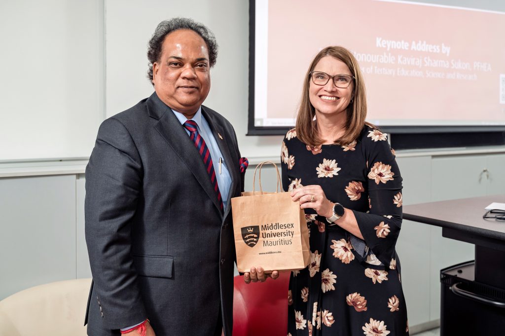 « En tant qu’institution de référence à Maurice, Middlesex University Mauritius joue un rôle clé dans l’amélioration de l’accès à l’enseignement supérieur britannique pour les étudiants mauriciens et ceux des pays voisins. Nous continuons à faire évoluer notre offre académique, conformément à l’esprit du colloque, axé sur les approches novatrices centrées sur l’humain. L’introduction de nouveaux programmes proposés à partir de l’année académique 2025-2026, notamment le BEng (Hons) Mechatronics and Robotics Engineering et le BSc (Hons) AI and Data Science, reflète notre engagement à proposer un enseignement pertinent, inclusif et de haut niveau. Ces développements s’inscrivent dans notre mission plus large : doter les étudiants de compétences adaptées aux défis futurs et de l’agilité nécessaire à leur épanouissement dans un monde de plus en plus dynamique, porté par la technologie », a-t-elle ajouté.