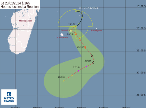 Un avertissement de cyclone de classe II est en vigueur à Maurice. Septième bulletin de cyclone pour Maurice émis à 22h10 ce mardi 23 janvier 2024.